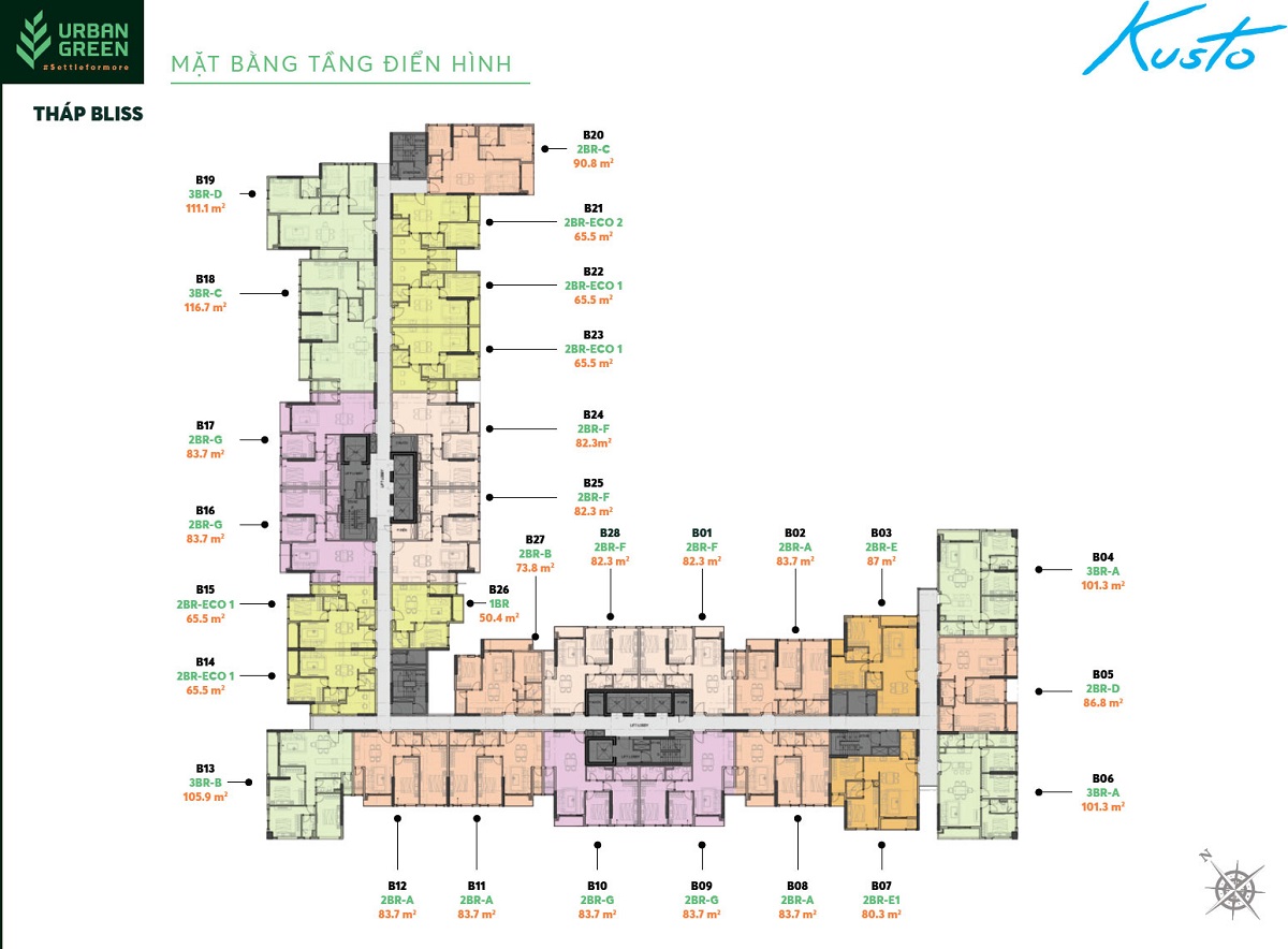 Mặt bằng tầng điển hình tháp Bliss dự án Urban Green Thủ Đức