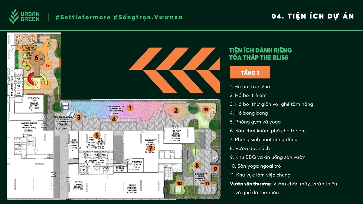 Mặt bằng tầng tiện ích tháp Bliss dự án Urban Green Thủ Đức
