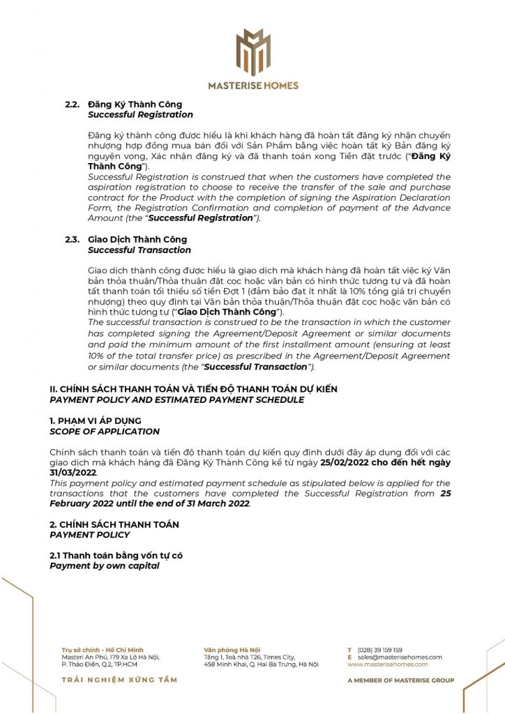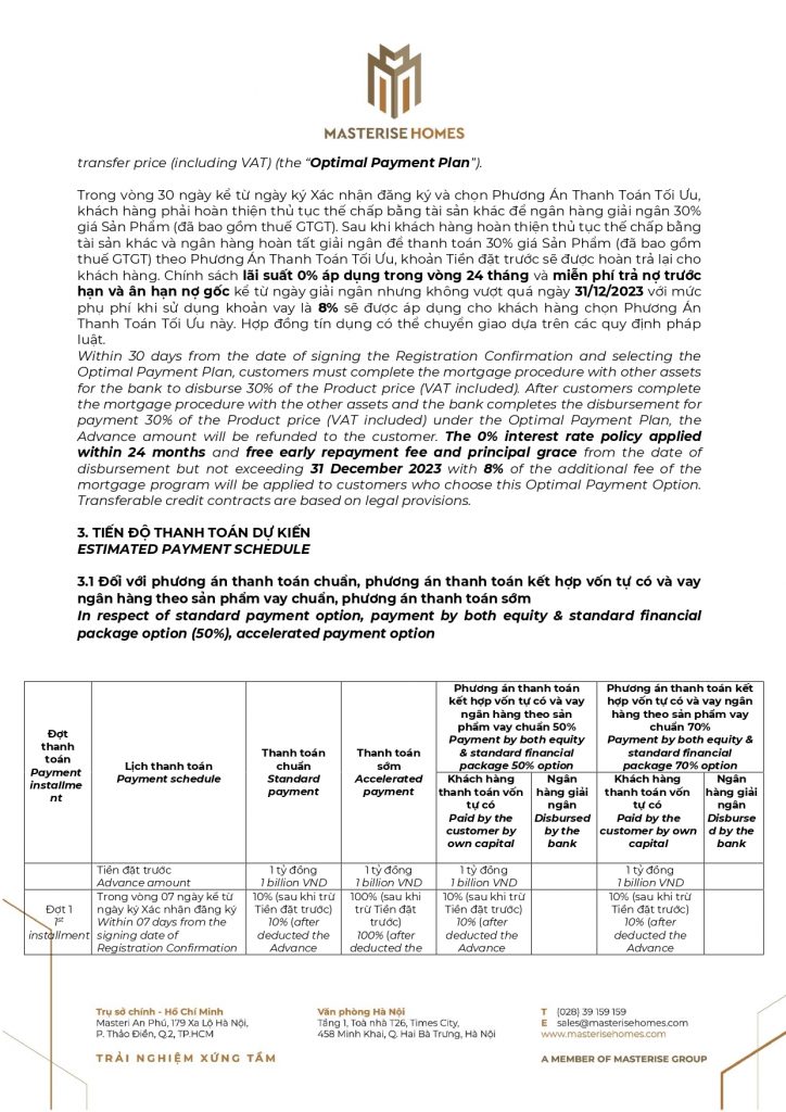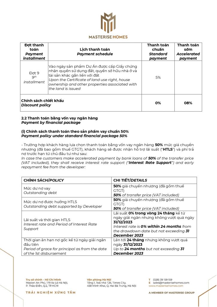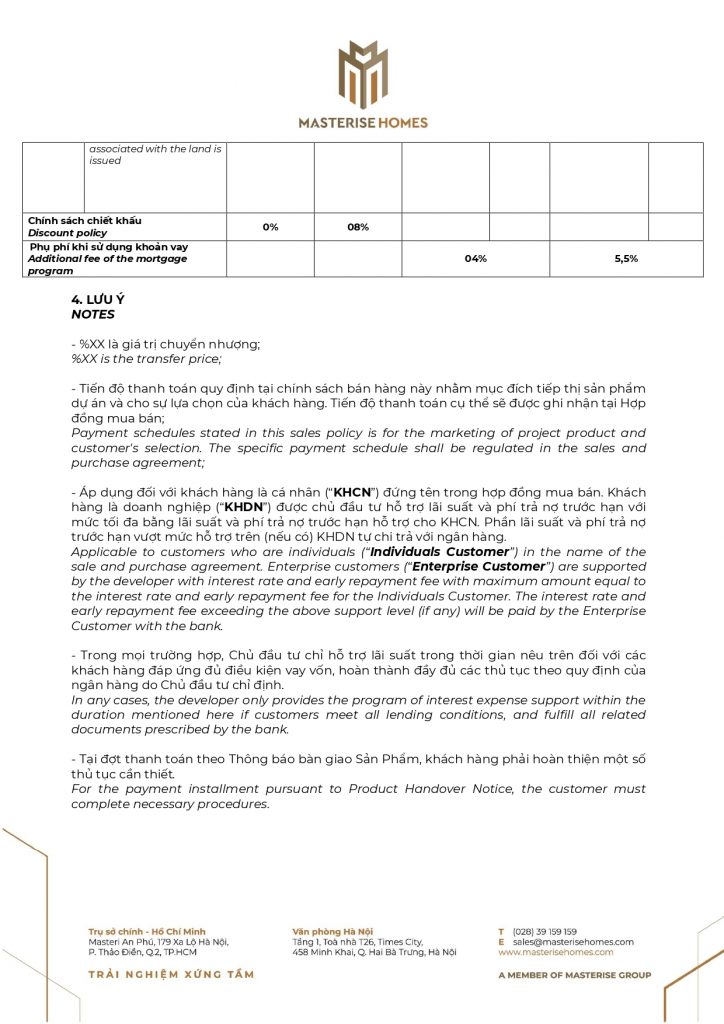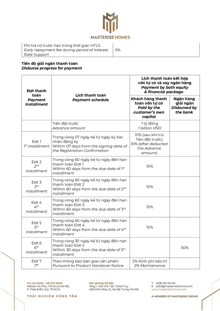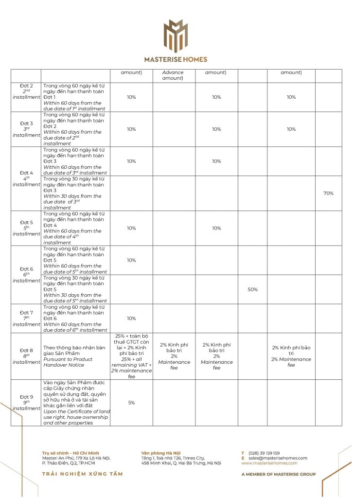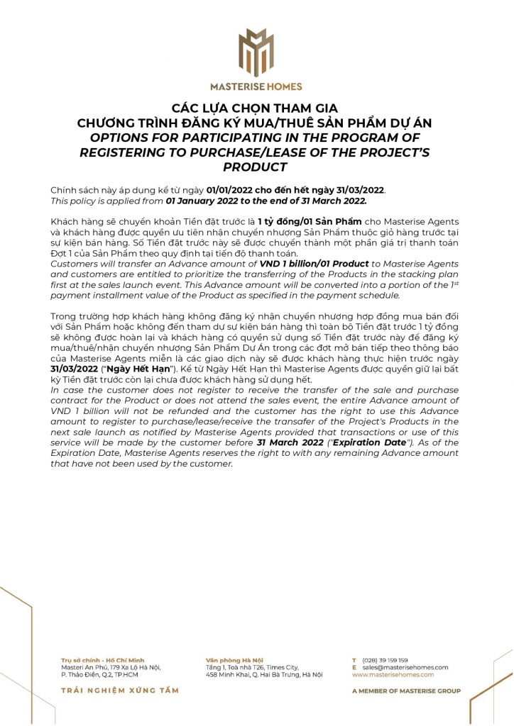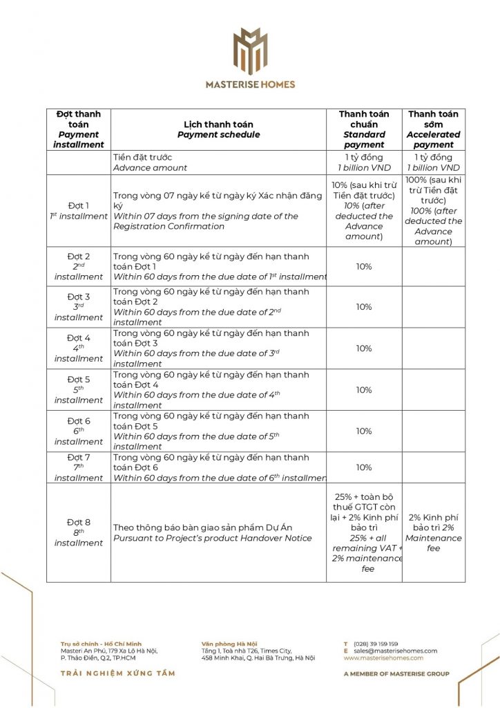 | Đơn vị phát triển dự án | Masterise Homes thuộc Masterise Group |
