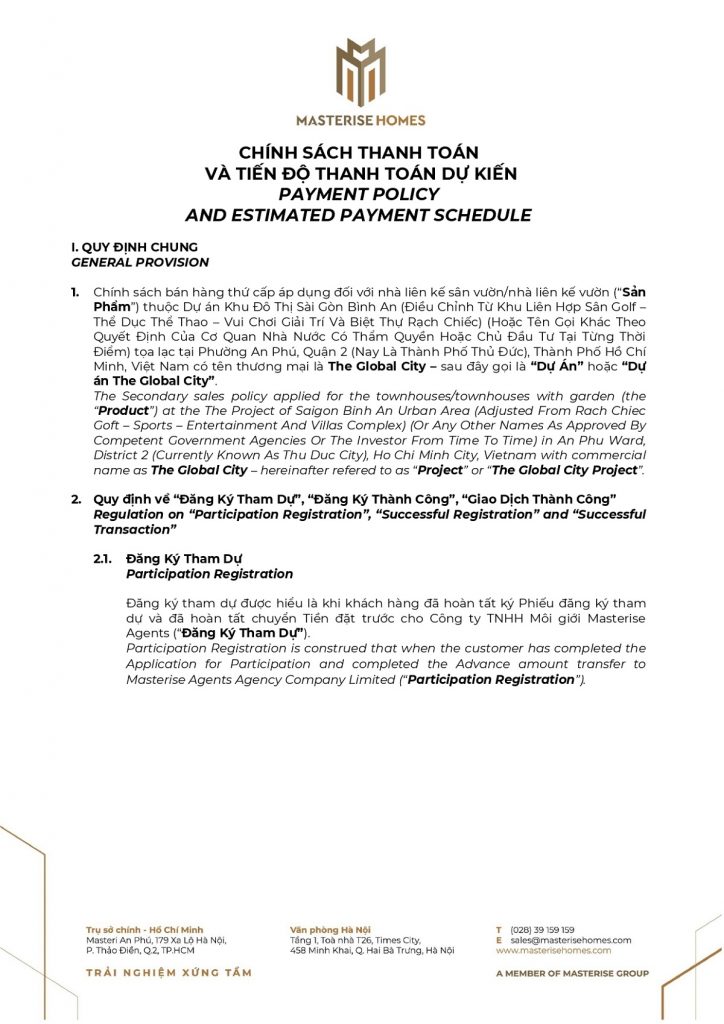 Dự án The Global City có tổng cộng 6 phase, trong đó phase 1, 2, 3 sẽ là các phân khu nhà phố và biệt thự, có diện tích tích từ 75-120m2, trong đó: